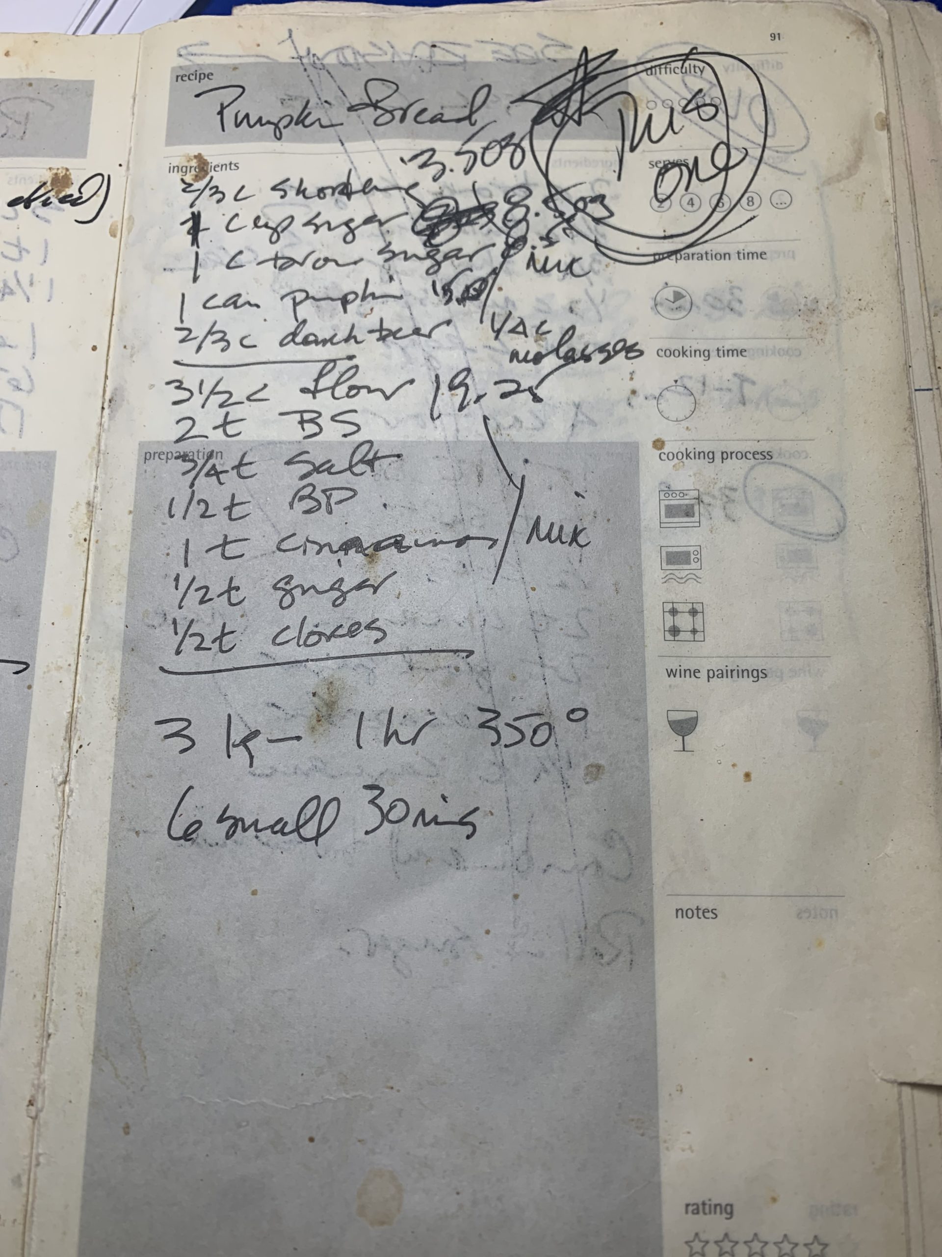 photograph, it has been around a long time and, based on the “this one” written and circled, it replaced one I had used previously. It has also erased the memory of the former recipe.