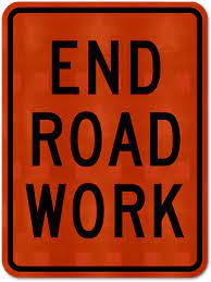 caused by highway construction. When we saw the “End Road Work” sign that set us free I remarked, “I think that ought to be a protest sign.”