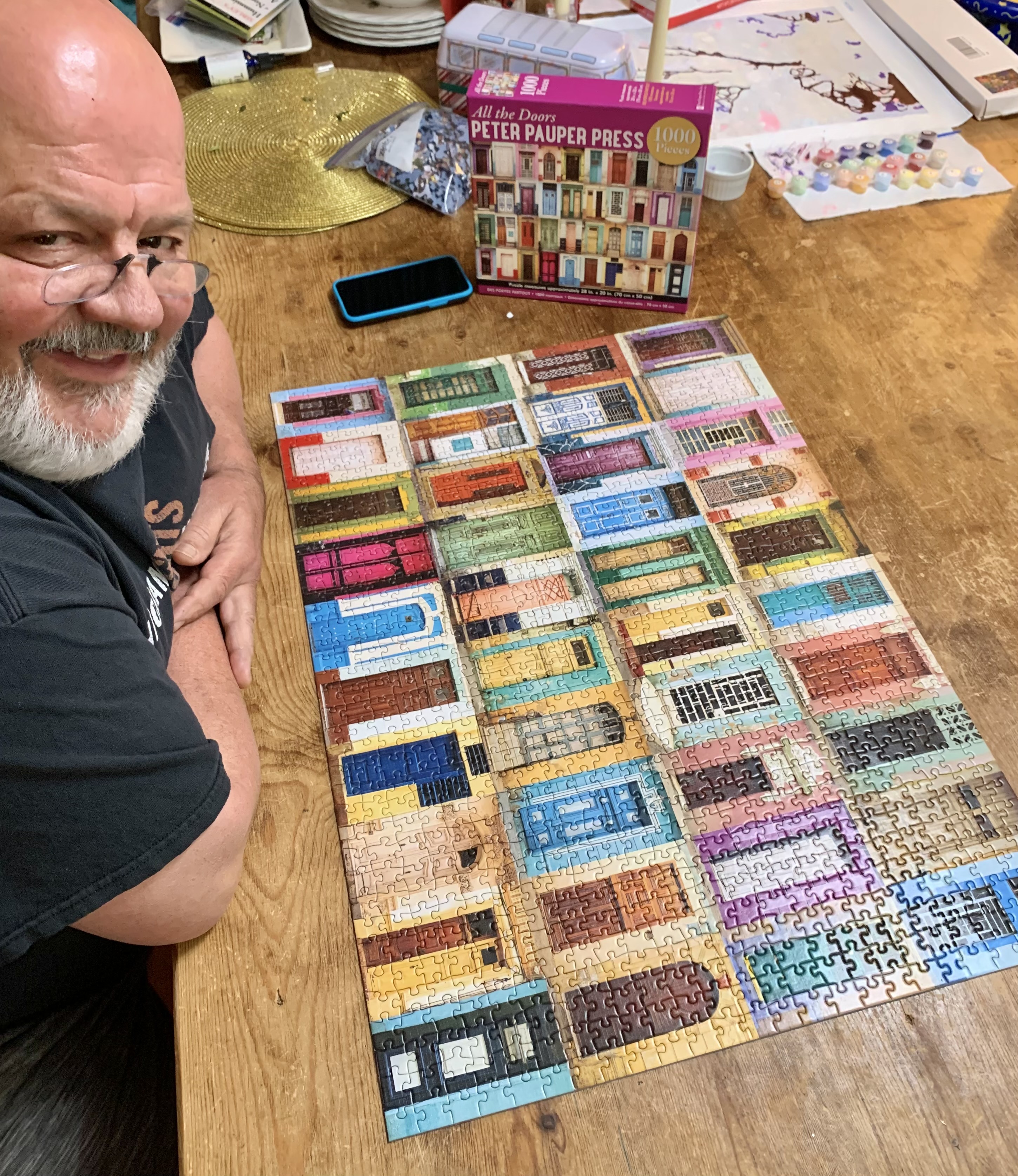 The other thing I have done this past week is puzzle. My mother liked jigsaw puzzles so much she made it a verb. Ginger gave me a puzzle of a VW bus for Christmas that came in a tin shaped like a VW bus because I have always wanted one. I did that puzzle last week. When I posted it on Facebook, a church member brought me a couple of others. Last night we started working on a puzzle of the doors of Paris--1,000 pieces--and I finished it