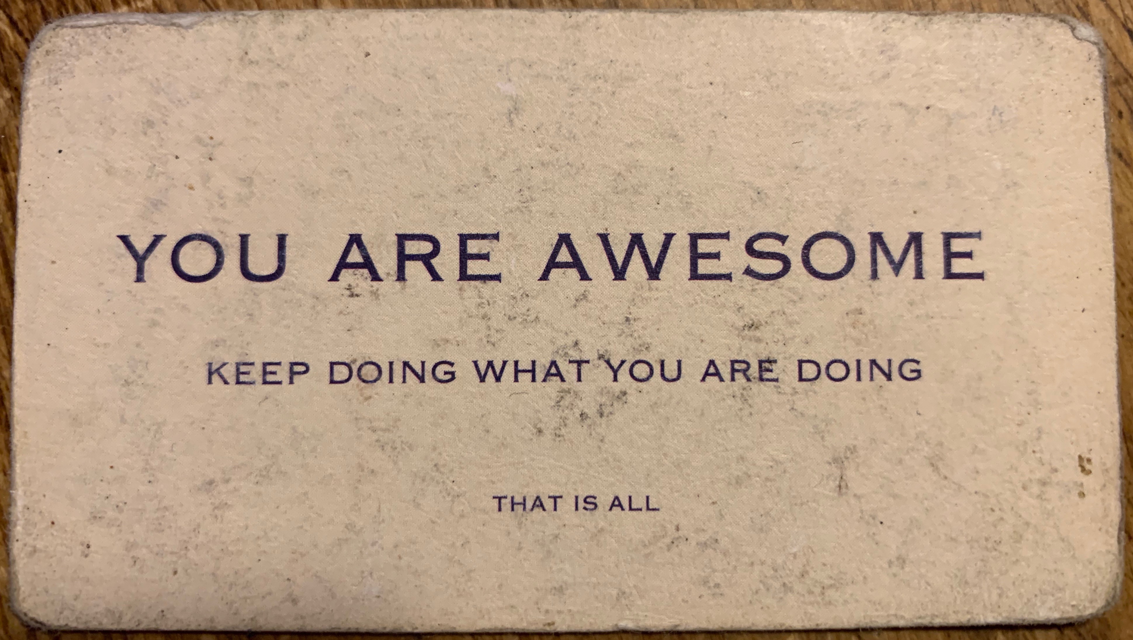 I have a card in my wallet that someone I didn’t know handed me probably twenty years ago. It doesn’t have a logo on it, or a name, or a phone number. All it says is