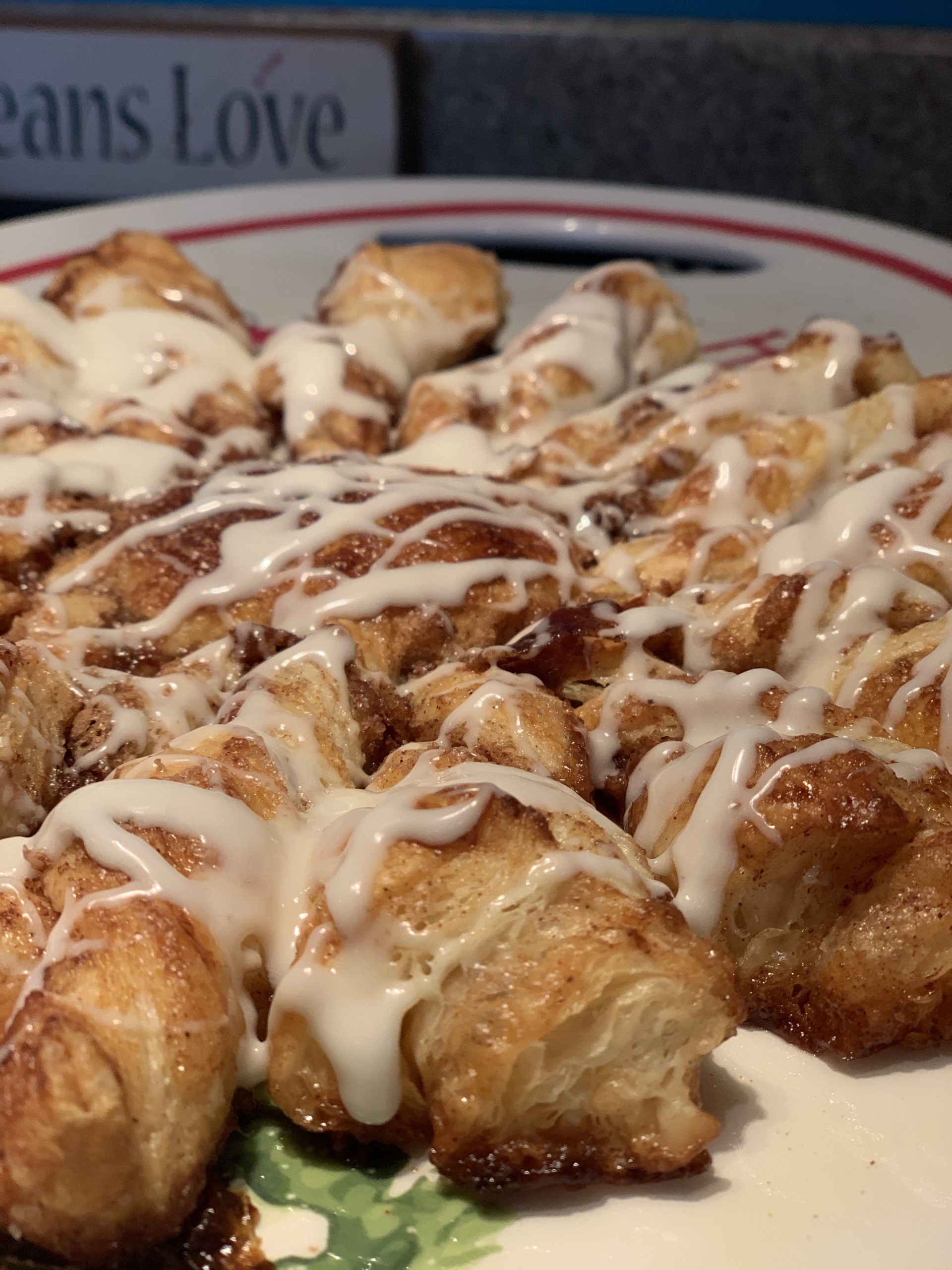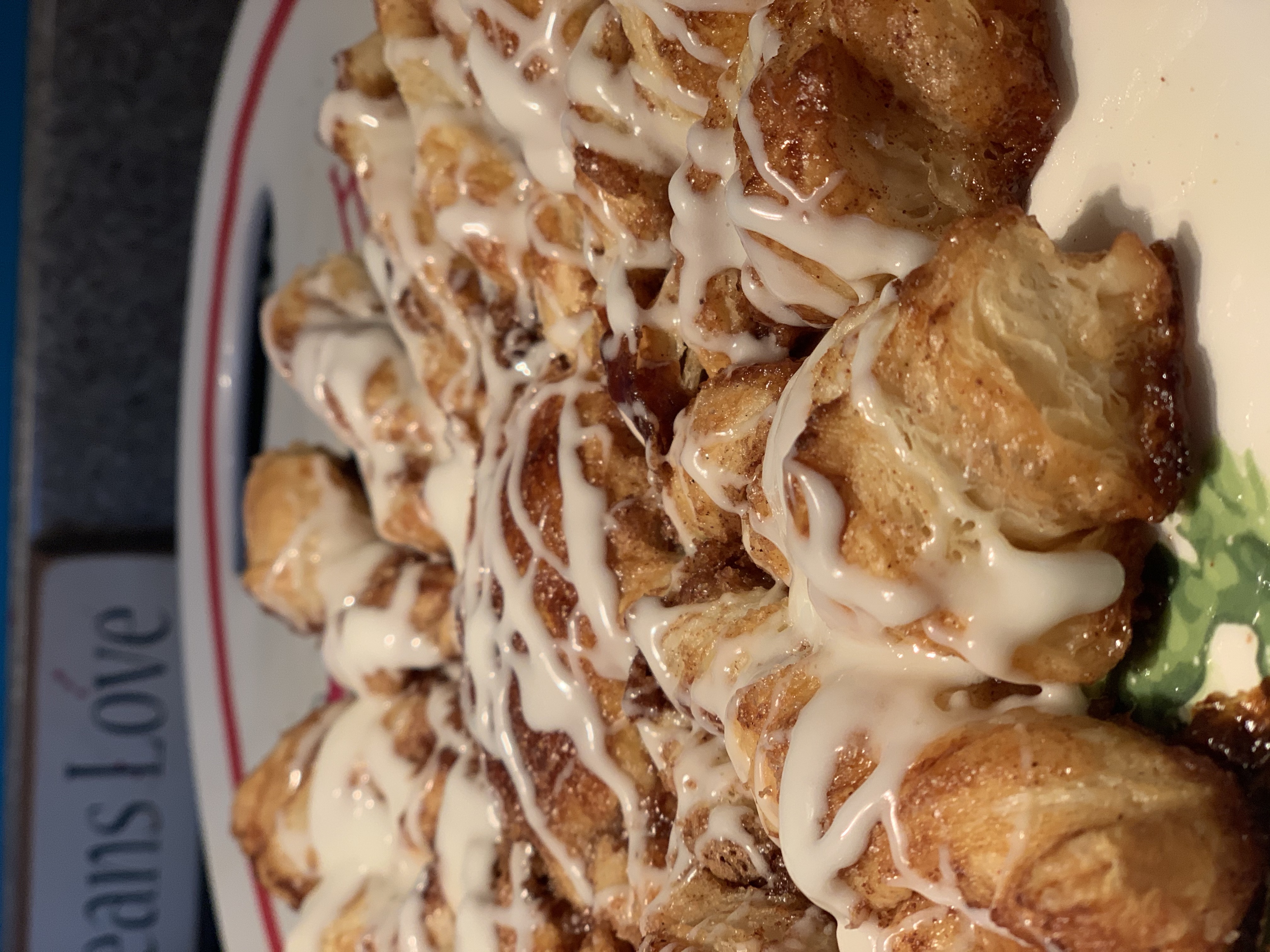 Meanwhile, mix the powdered sugar and cream. I didn’t put amounts because this really is a you’ll-know-it-when-you-see-it kind of thing. Start with about a half a cup of powdered sugar and a tablespoon of cream. Stir it up. If it is too thick, add cream incrementally until it is how you like it.