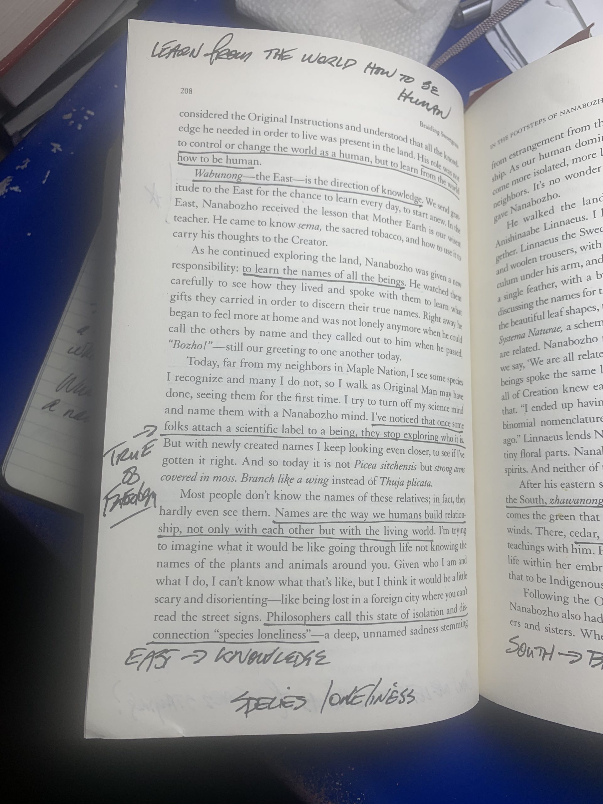 On an earlier page, Kimmerer said, “We learn from the world how to be human.”